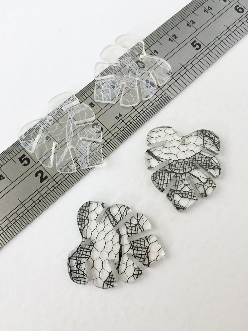 2 x Resin Monstera Leaf Pendants with Built-in Lace, 31x26mm