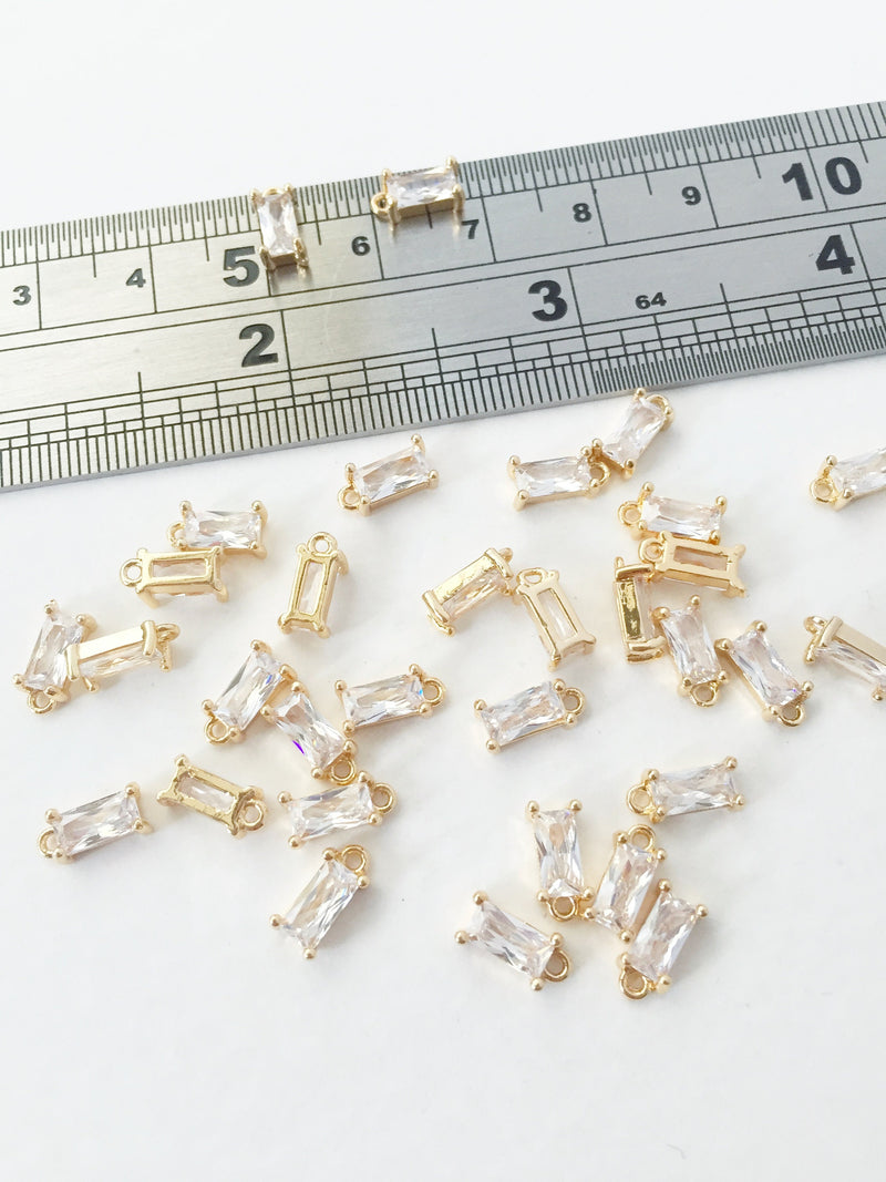 ✨ Clear baguette cut crystal charms in gold plated brass framing.