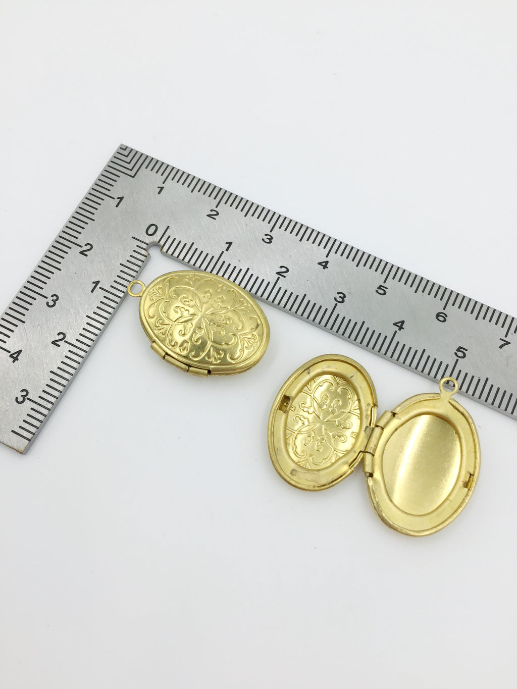 ✨ Raw brass oval shaped locket pendants with embossed floral pattern