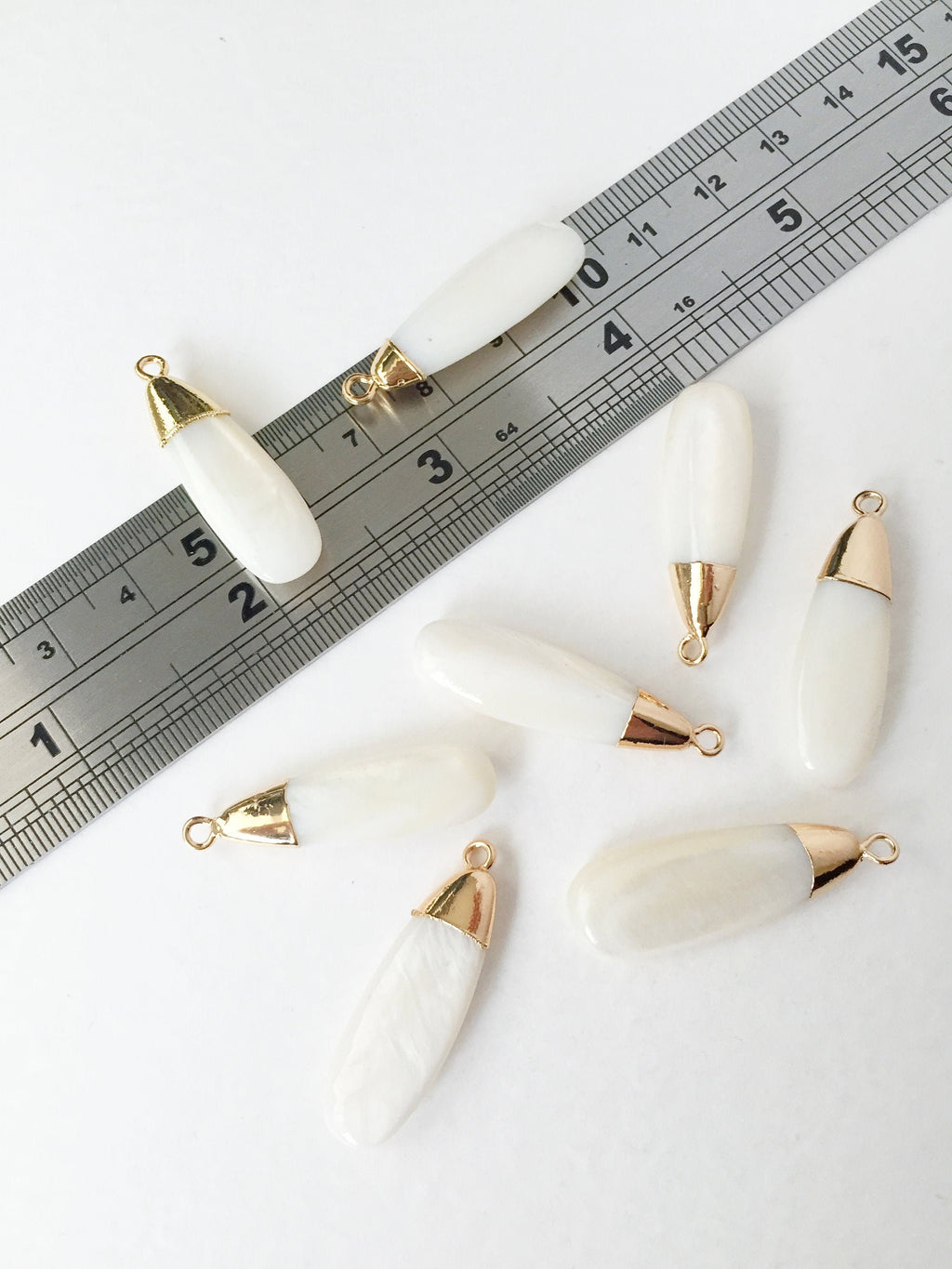 ✨ Elongated teardrop shell charms, natural white colour