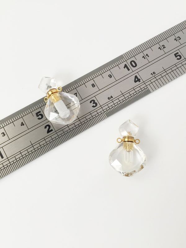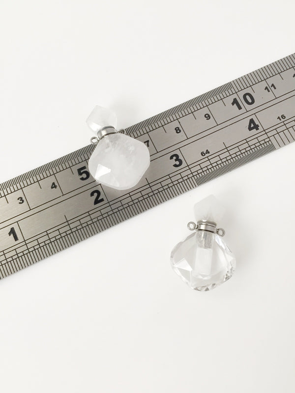 1 x Clear Natural Quartz Perfume Bottle Pendant, Healing Crystal Pendant 17x21mm(1638)