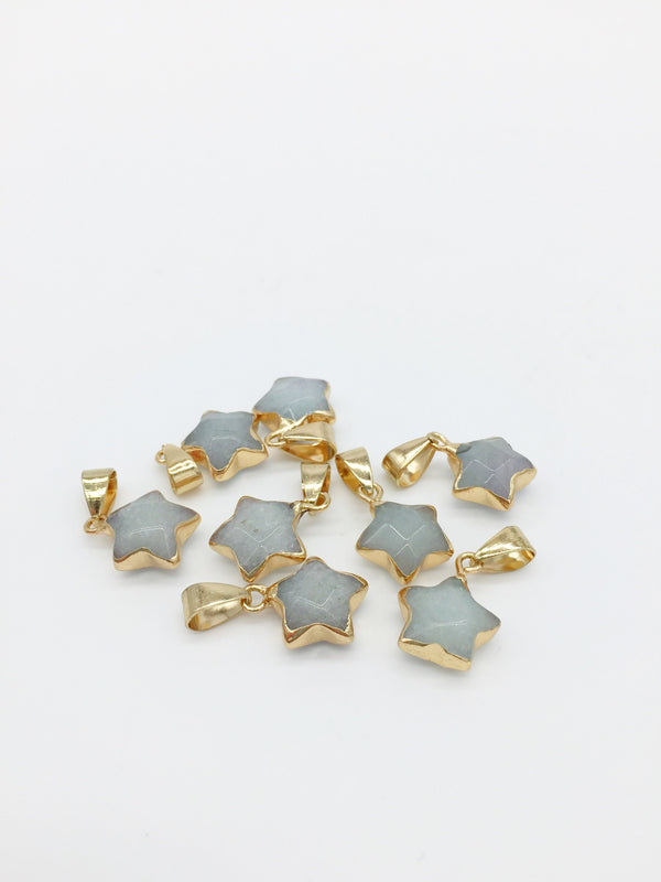 1 x Faceted Blue Jade Fan Pendant, 19x20mm Gemstone Charm (0584)