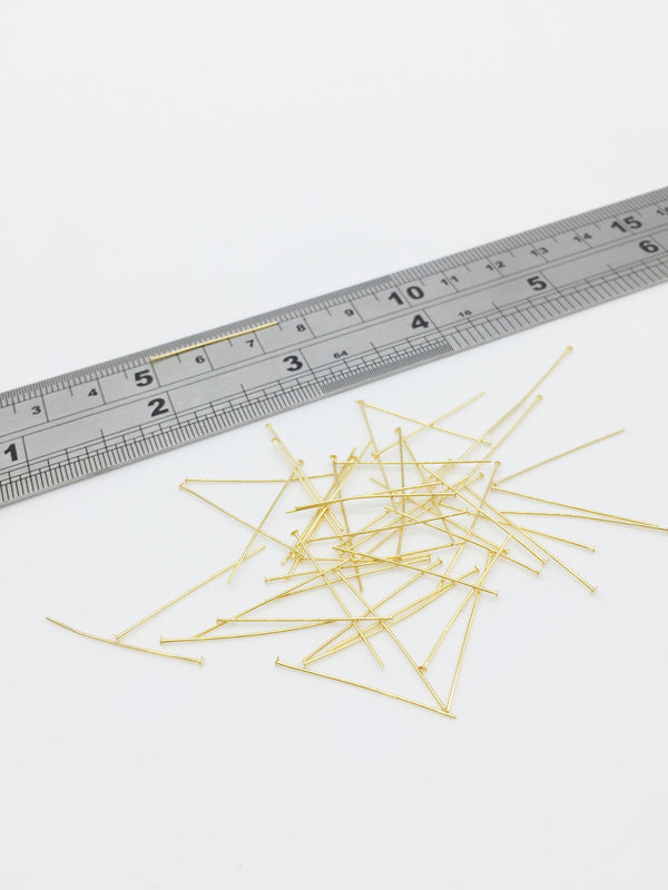50 x 18K Gold Plated Brass Eye Pins, 38x0.7mm (3331)