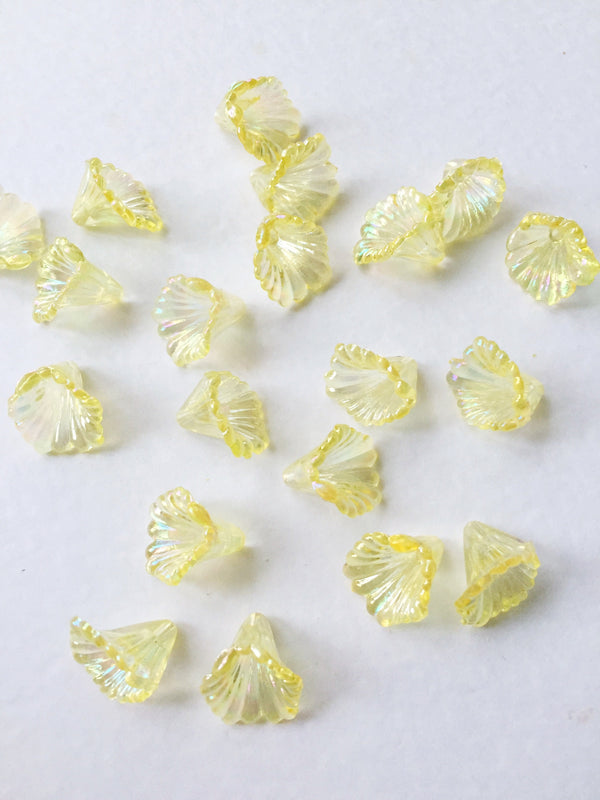 50 x Aurora Borealis Plated Blue Acrylic Bell Shaped Flower Beads, 8x10mm (3377)
