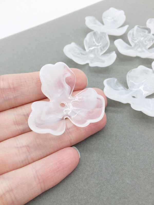 10 x Frosted White Flower Beads, Semi-transparent Lucite Flowers, 26x29mm