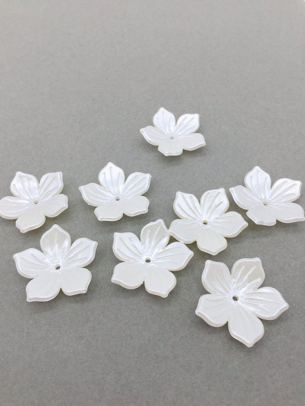 10 x Four Petal Pearl White Flower Beads, 11x14mm (0865)