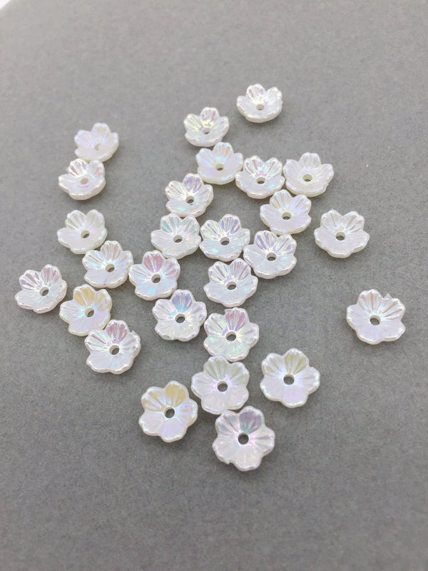 50 x Tiny Pearlised Flower Beads, 6.5mm (0764, 0859)