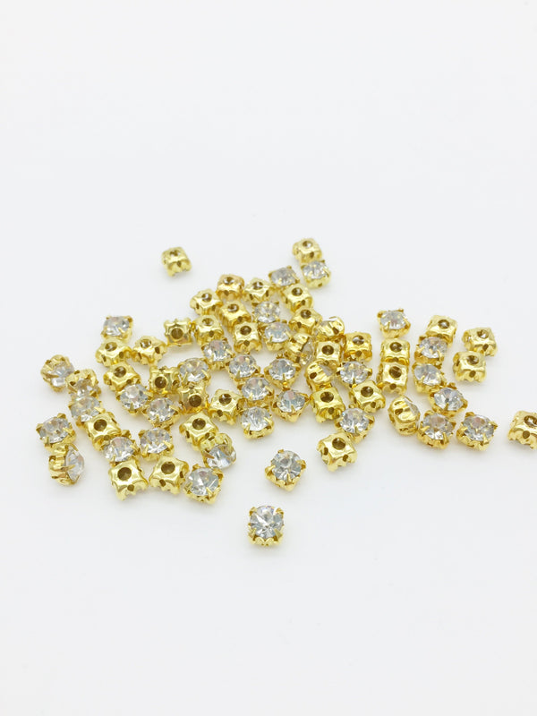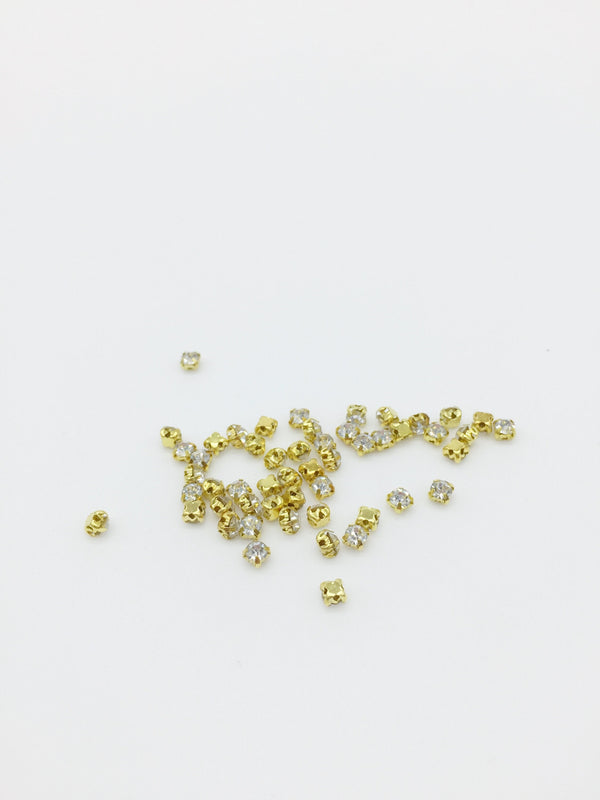 72 x 3mm Gold Sew On Rhinestone, Clear Crystal Montees (1823)72 x 3mm Gold Sew On Rhinestone, Clear Crystal Montees (1823)