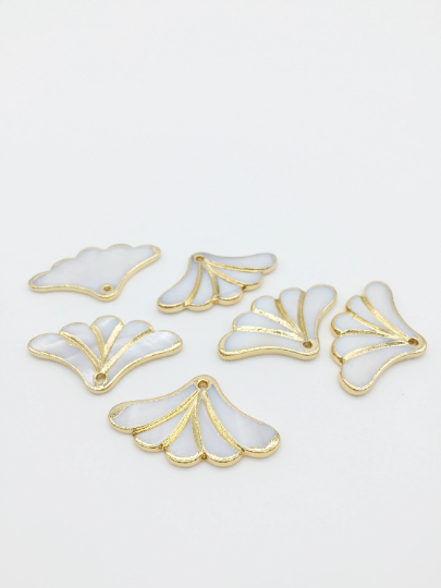 1 x Fan Shaped Mother of Pearl Pendant with Gold Inlay, 23x37mm (3798)