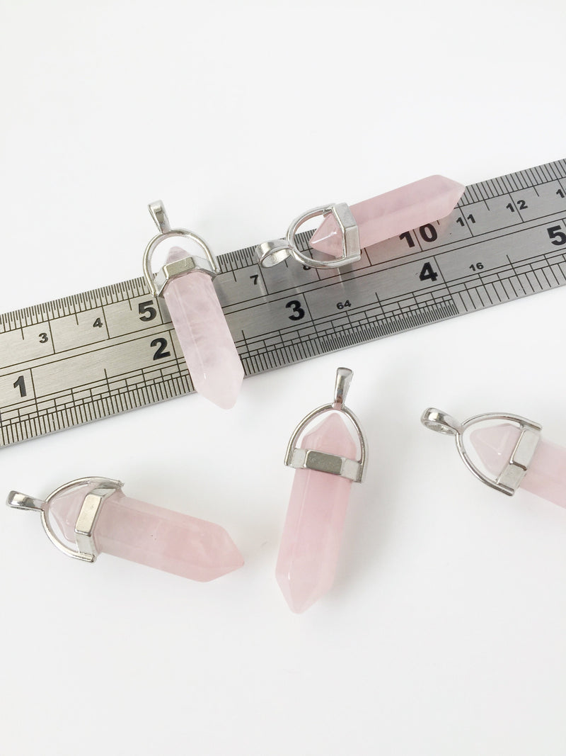 1 x Pointed Rose Quartz Healing Crystal Pendant, 43x13mm (1846)
