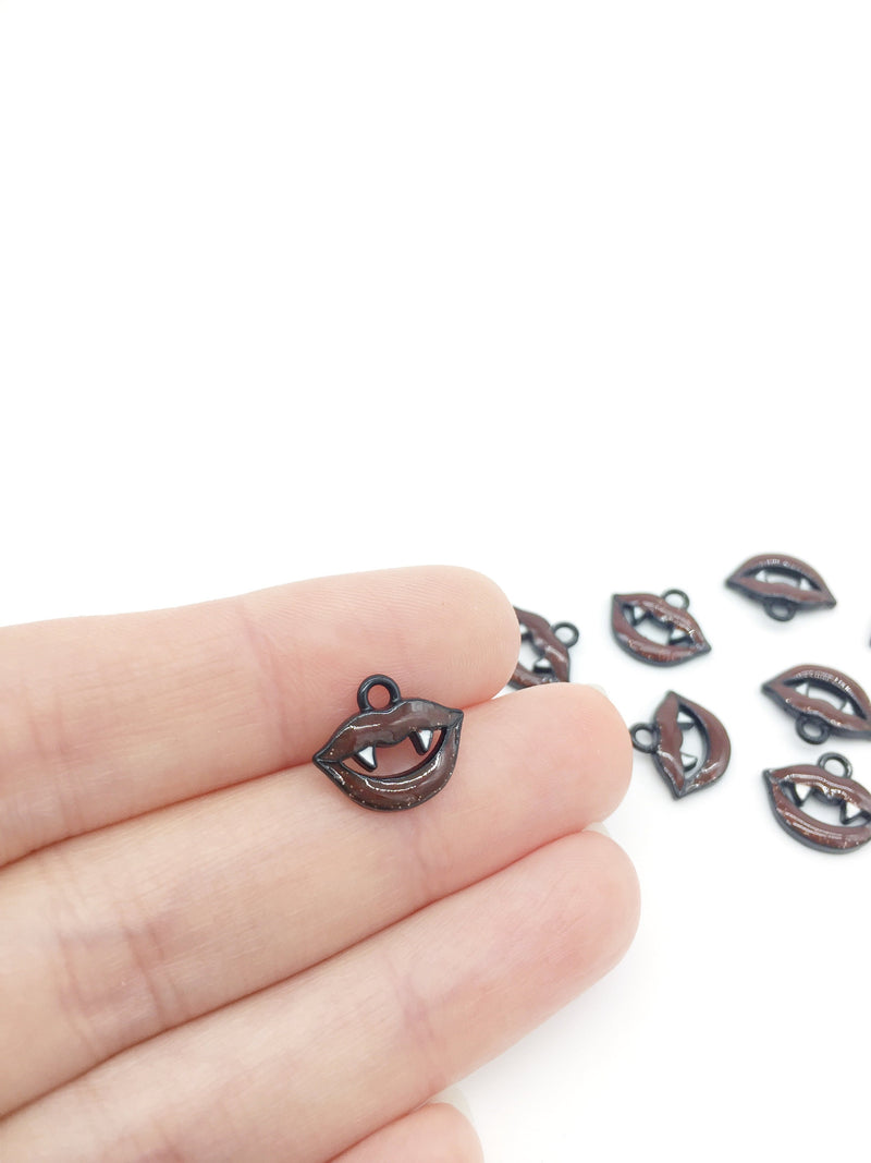 10 x Enamel Coated Vampire Fangs Charms, 11x14mm (2869)