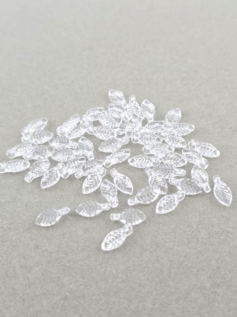 100 x Tiny Clear Acrylic Leaf Beads, 5x10mm (3680)