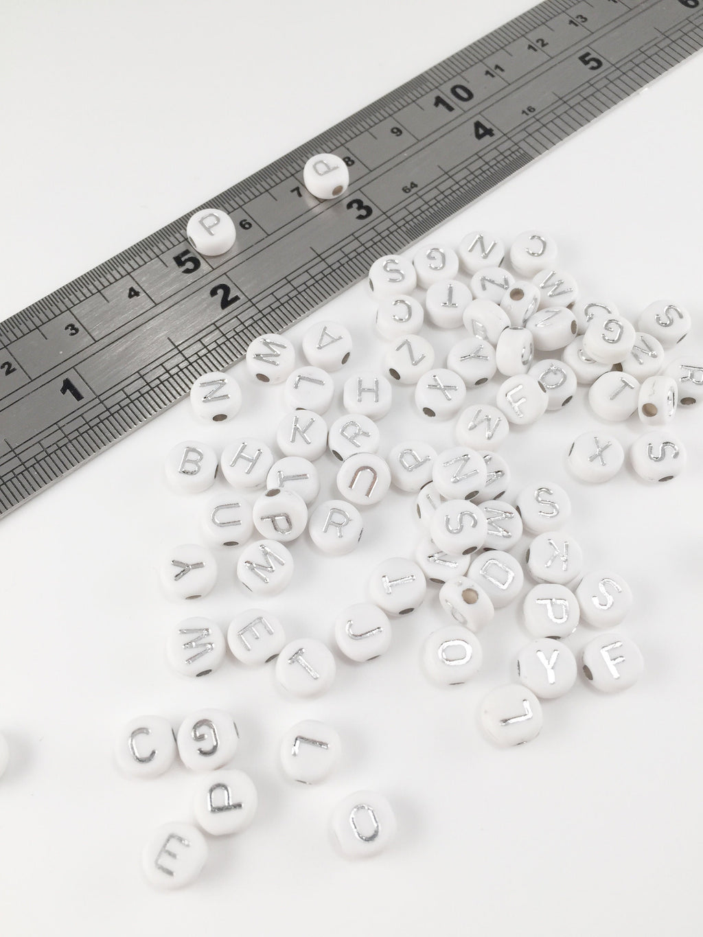✨ Acrylic letter beads, white with silver letters, picked at random