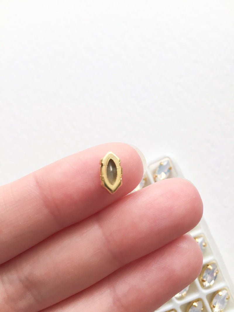 12 x 5x10mm White Opal Glass Navette Sew On Rhinestones, Rhodium or Gold Claw