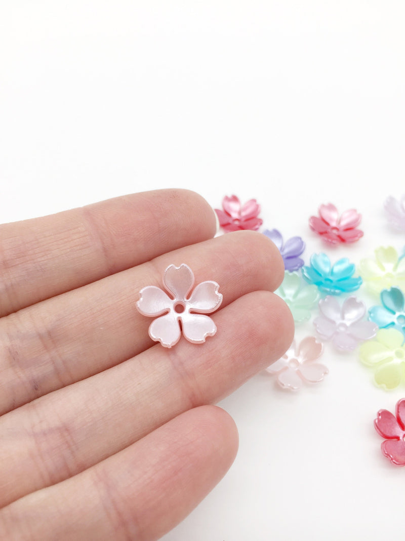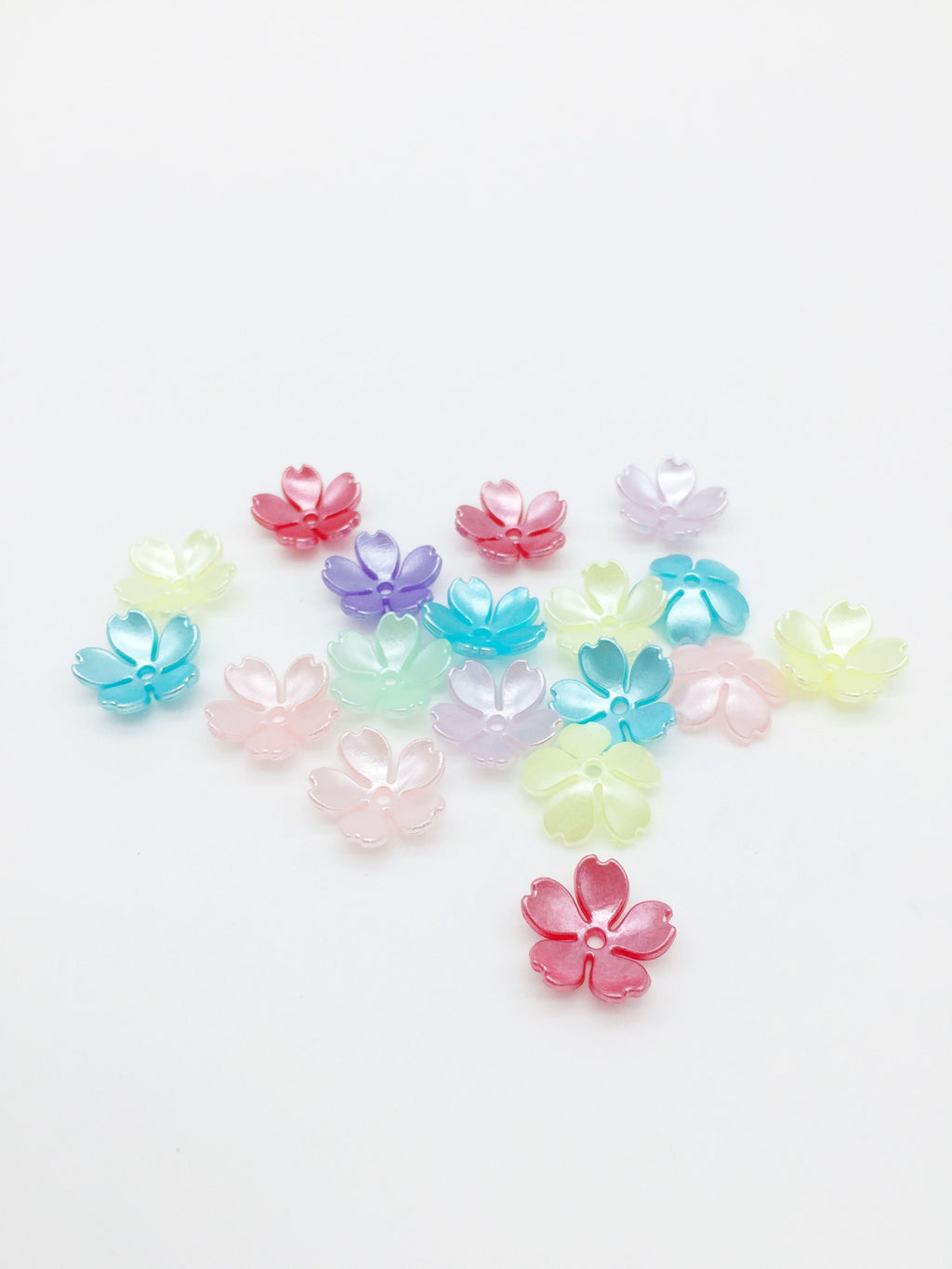20 x Pearlised Multicolour Flower Beads, 15mm (3384)