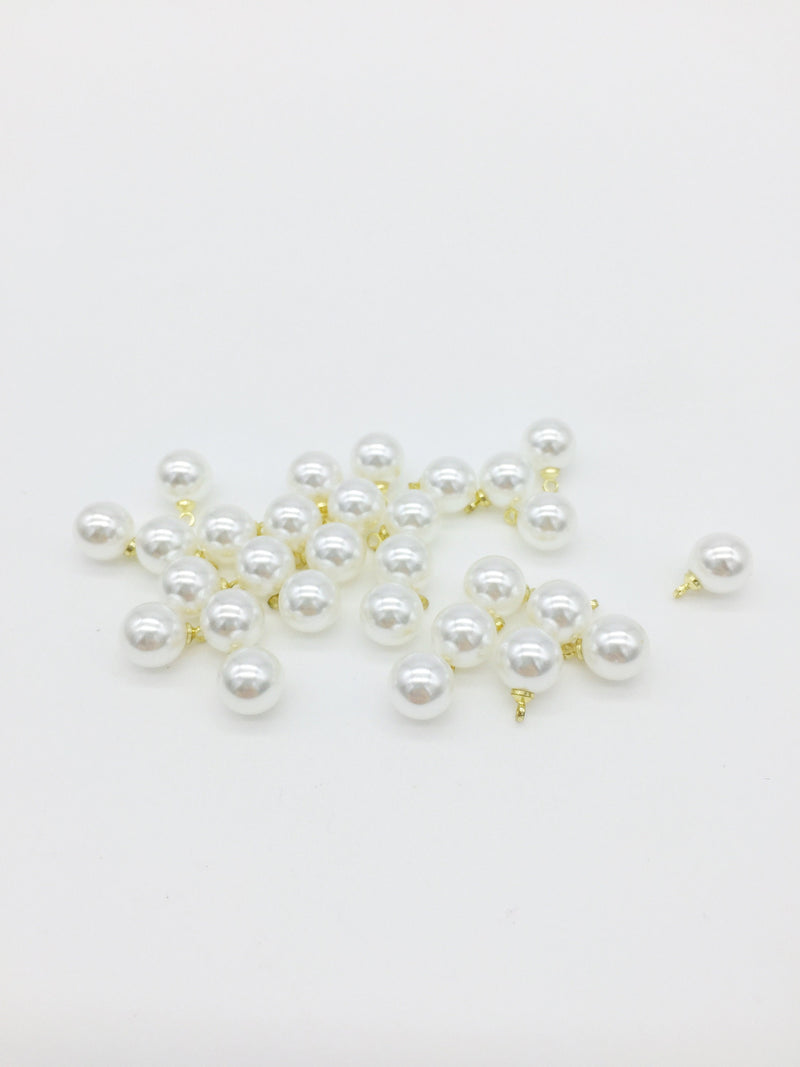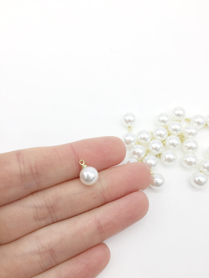 40 x Pearl Charms with Gold Loops, 6mm (3243)