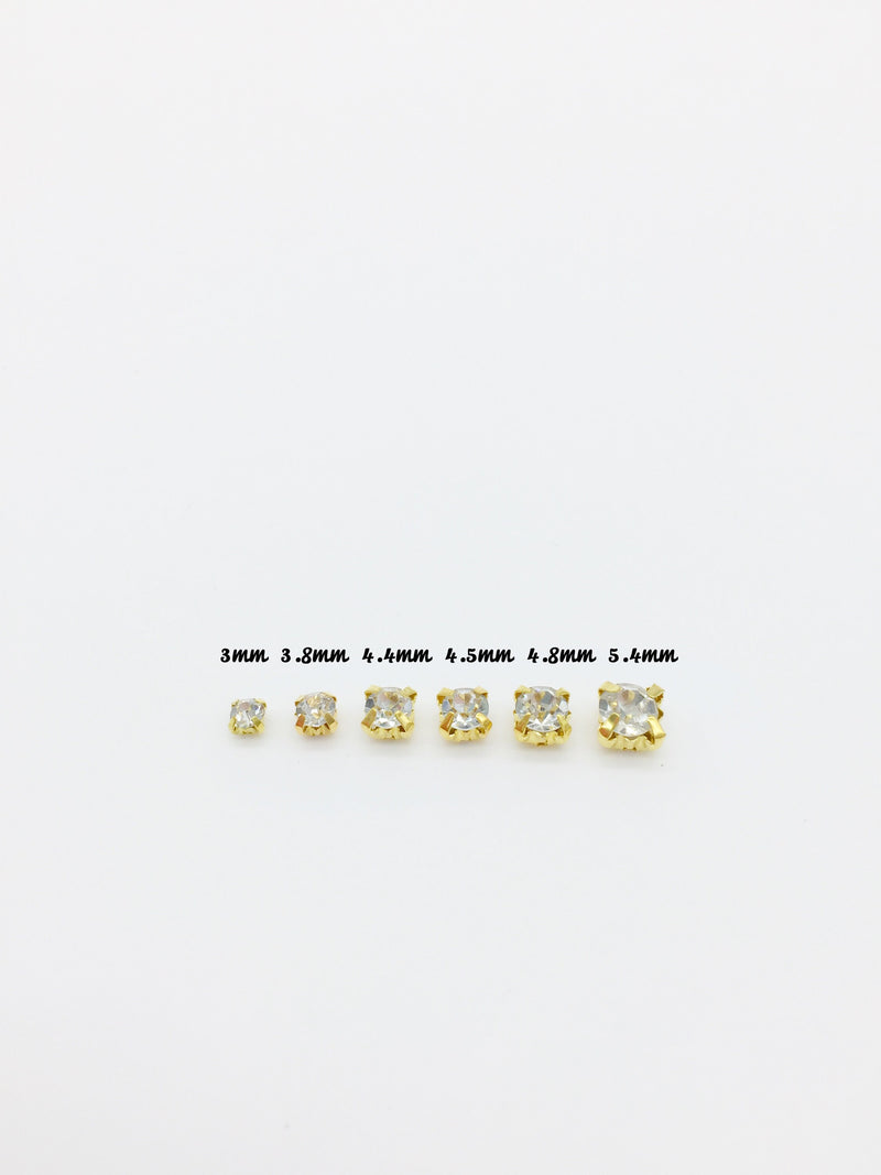 72 x 3.8mm Gold Sew-on Clear Glass Rhinestones, 3.8mm Chatons (1824)