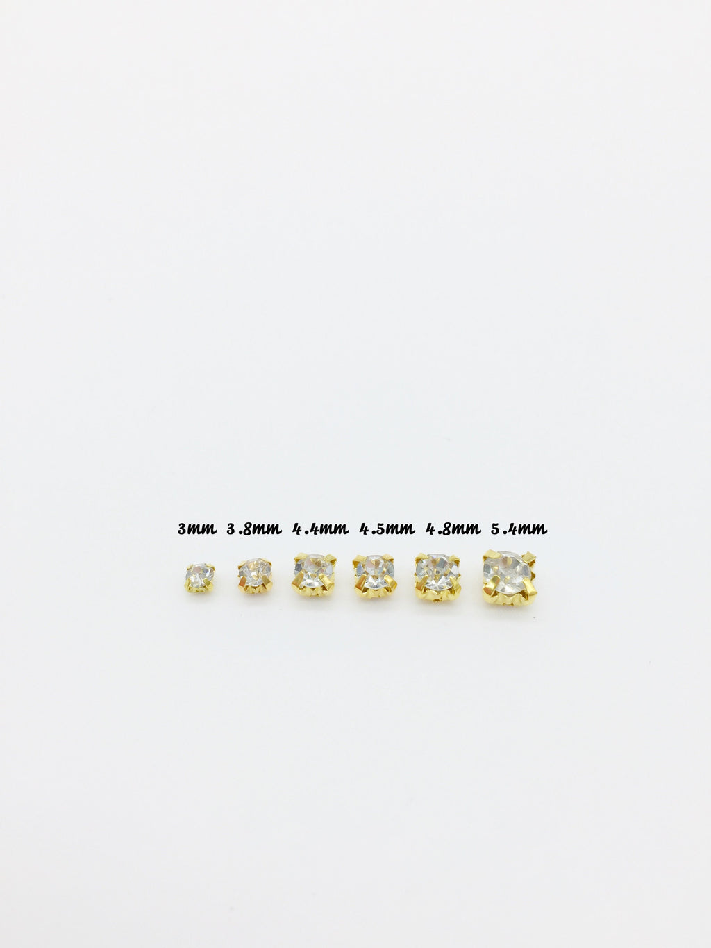✨ Clear crystal glass rhinestone with gold base, with 4 holes for sewing/wiring
