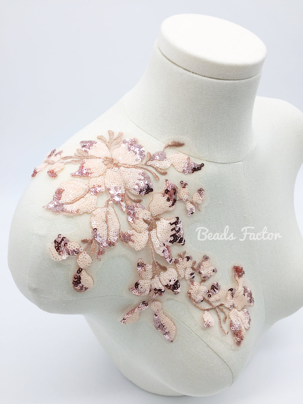 Pastel Pink Sequins Beaded Lace Patch, 29x15mm