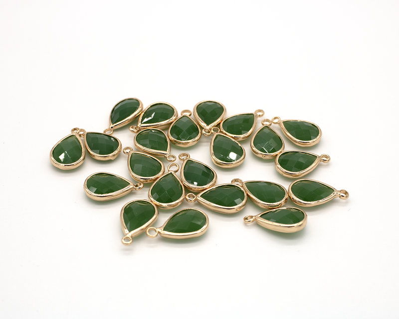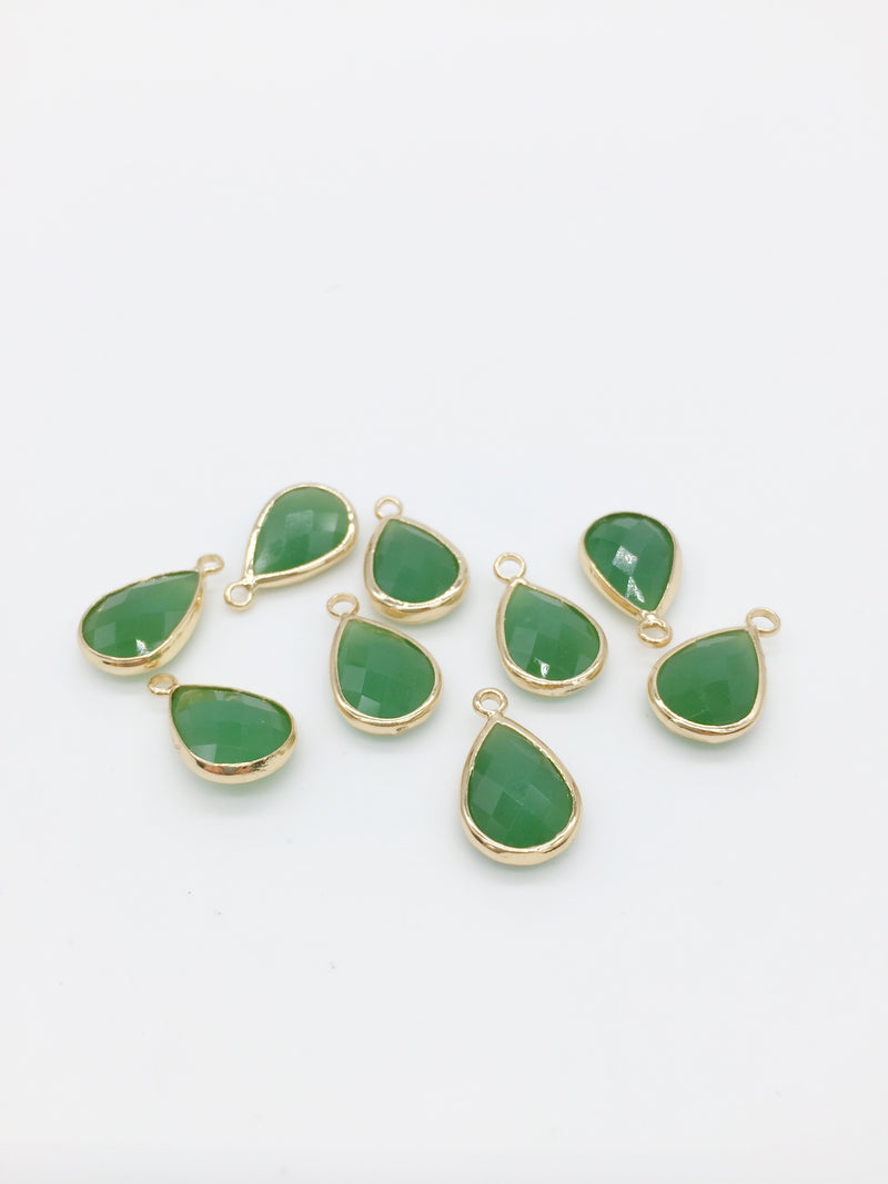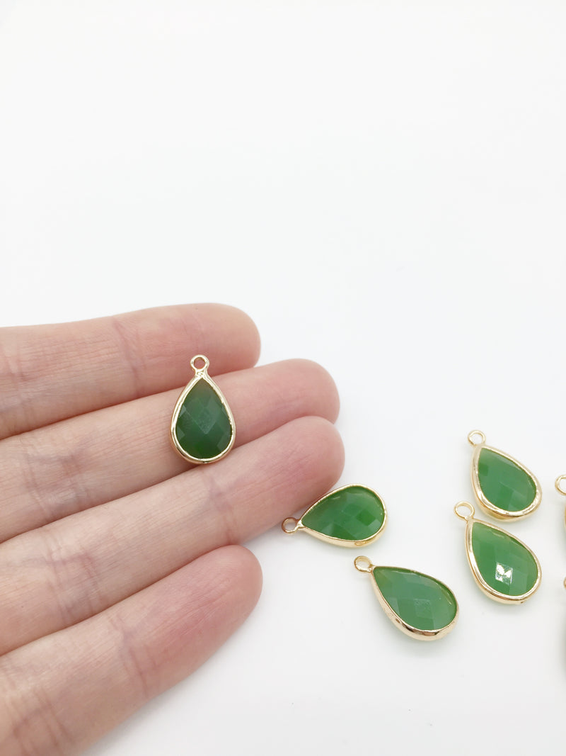 ✨ Jade green faceted teardrop glass pendants in bezel set gold tone framing