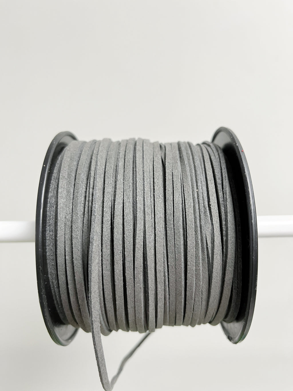 Dark Grey Faux Suede Cord, 3mm Soft Flat Cord (R2)