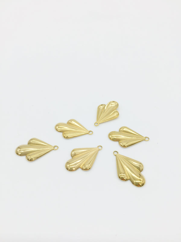10 x Gold Plated Stainless Steel Puffy Heart Charms, 11x9mm (1349)