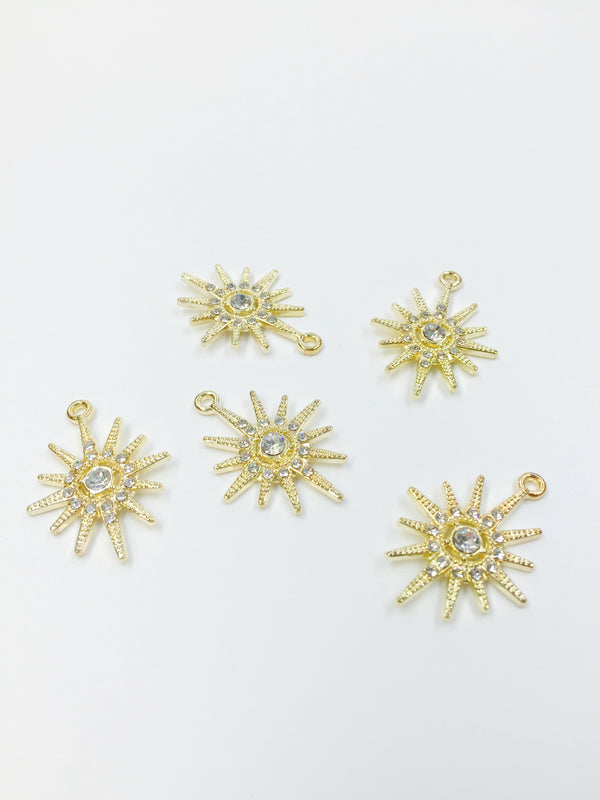 1 x 18K Gold Plated Northern Star Charm with Cubic Zirconia, 14x11mm (0279)