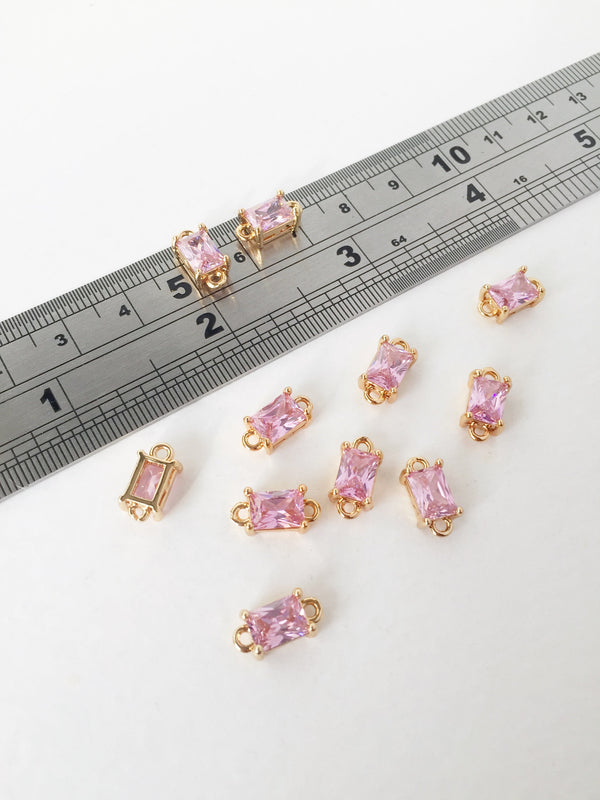 2 x 18K Gold Plated Pink Cubic Zirconia Stick Jewellery Links, 17.5x5mm