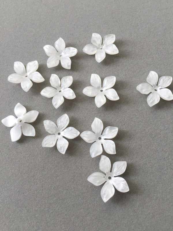 10 x Frosted White Flower Beads, 22x18mm Lucite Flowers