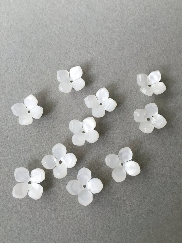 10 x Four Petal Pearl White Flower Beads, 11x14mm (0865)