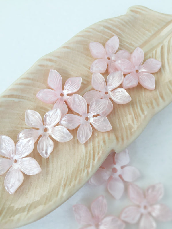 10 x 22mm Pearl Pink Flower Beads, Cellulose Acetate Flowers (3143)