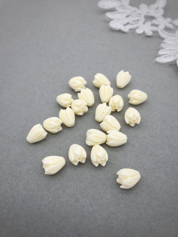 10 x Carved Coral Flower Buds, 9x7mm or 12x8mm Nude Flower Beads (0797)