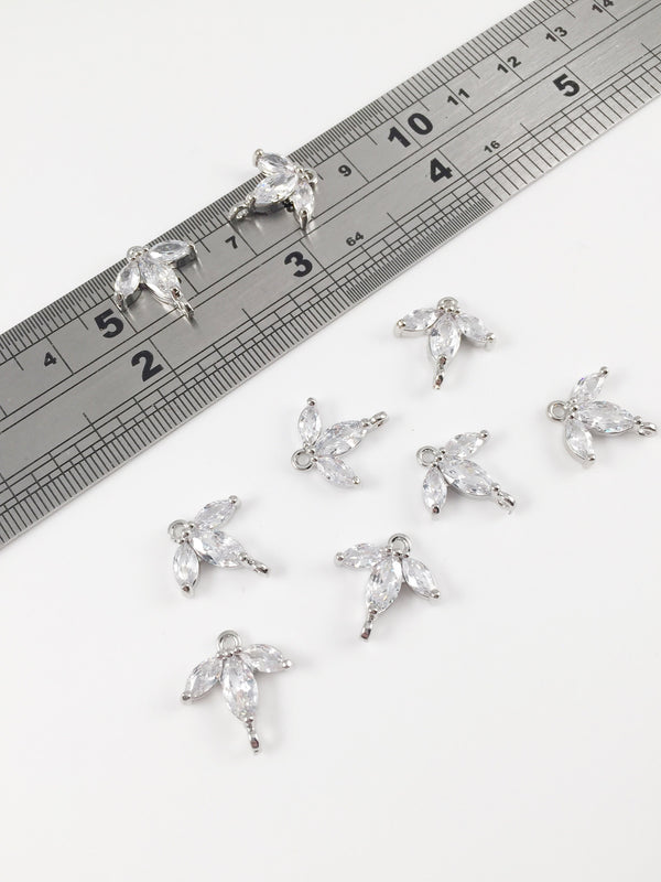 10 x Tiny Cubic Zirconia Platinum Charms, 6x4mm (1572)