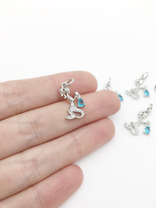 1 x Rhodium Plated Light Blue Cubic Zirconia Teardrop Charm, 5x8mm (3888)