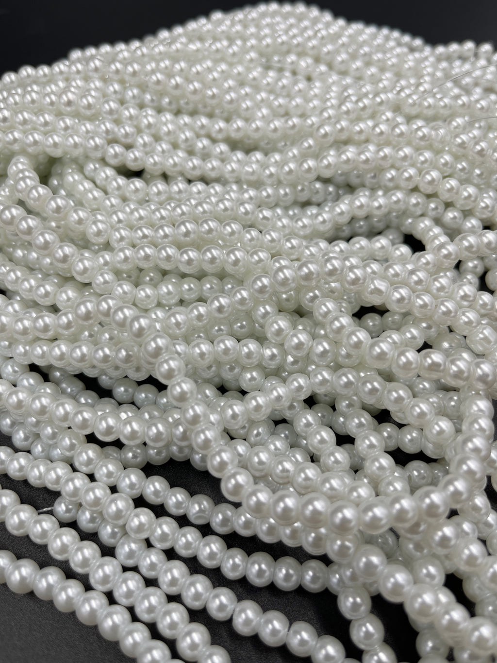 1 strand x 6mm White Glass Pearl Beads, 31 inch