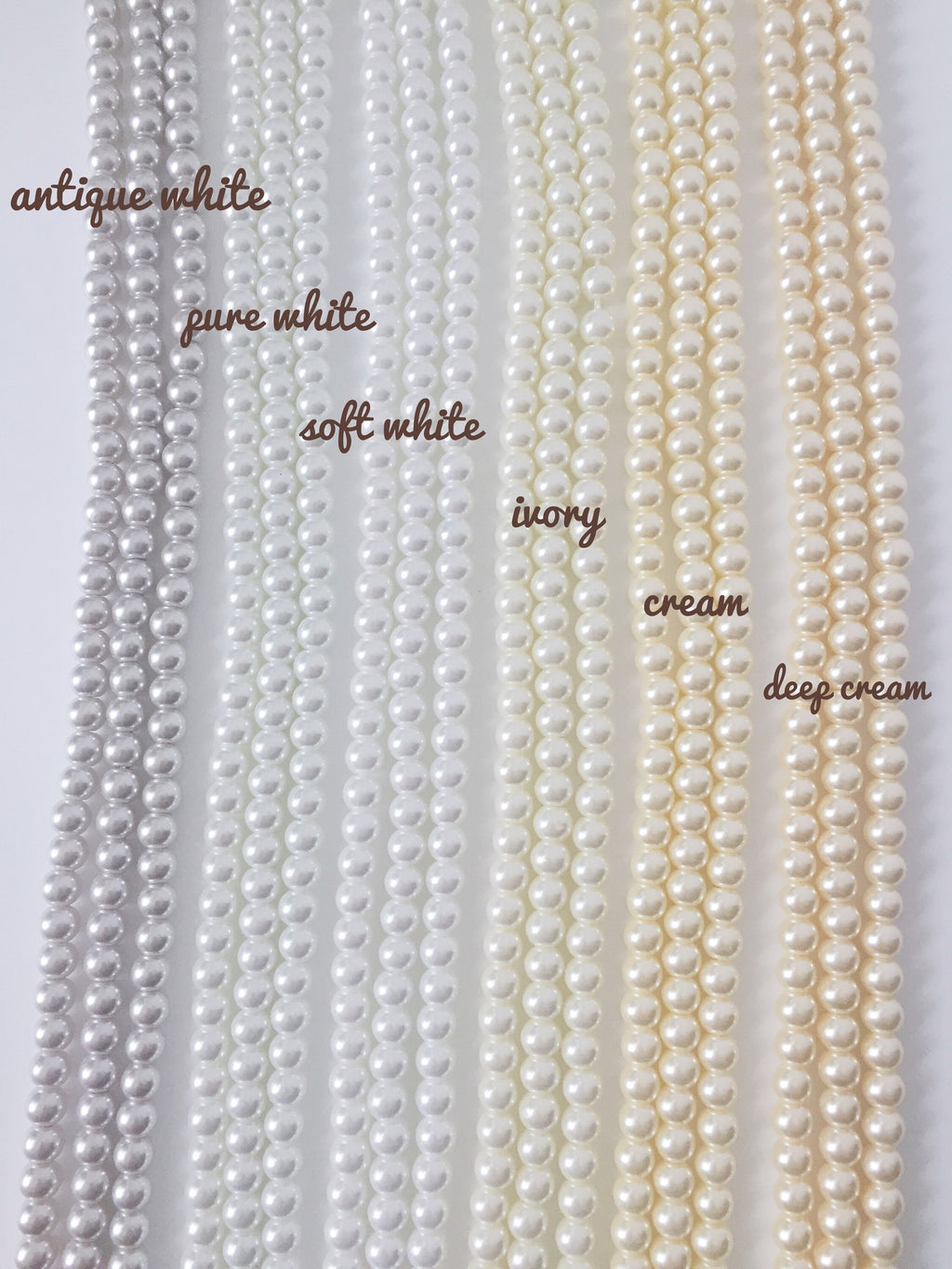 Please check pic. 3-6 for colour comparison with other glass pearls we stock.