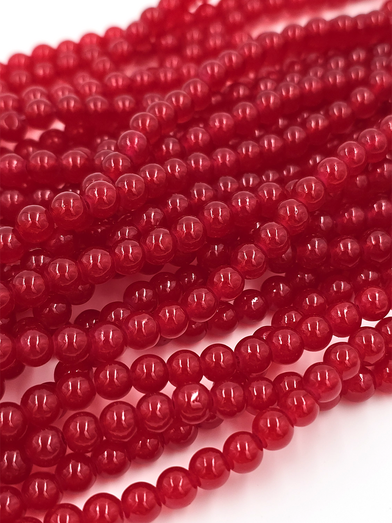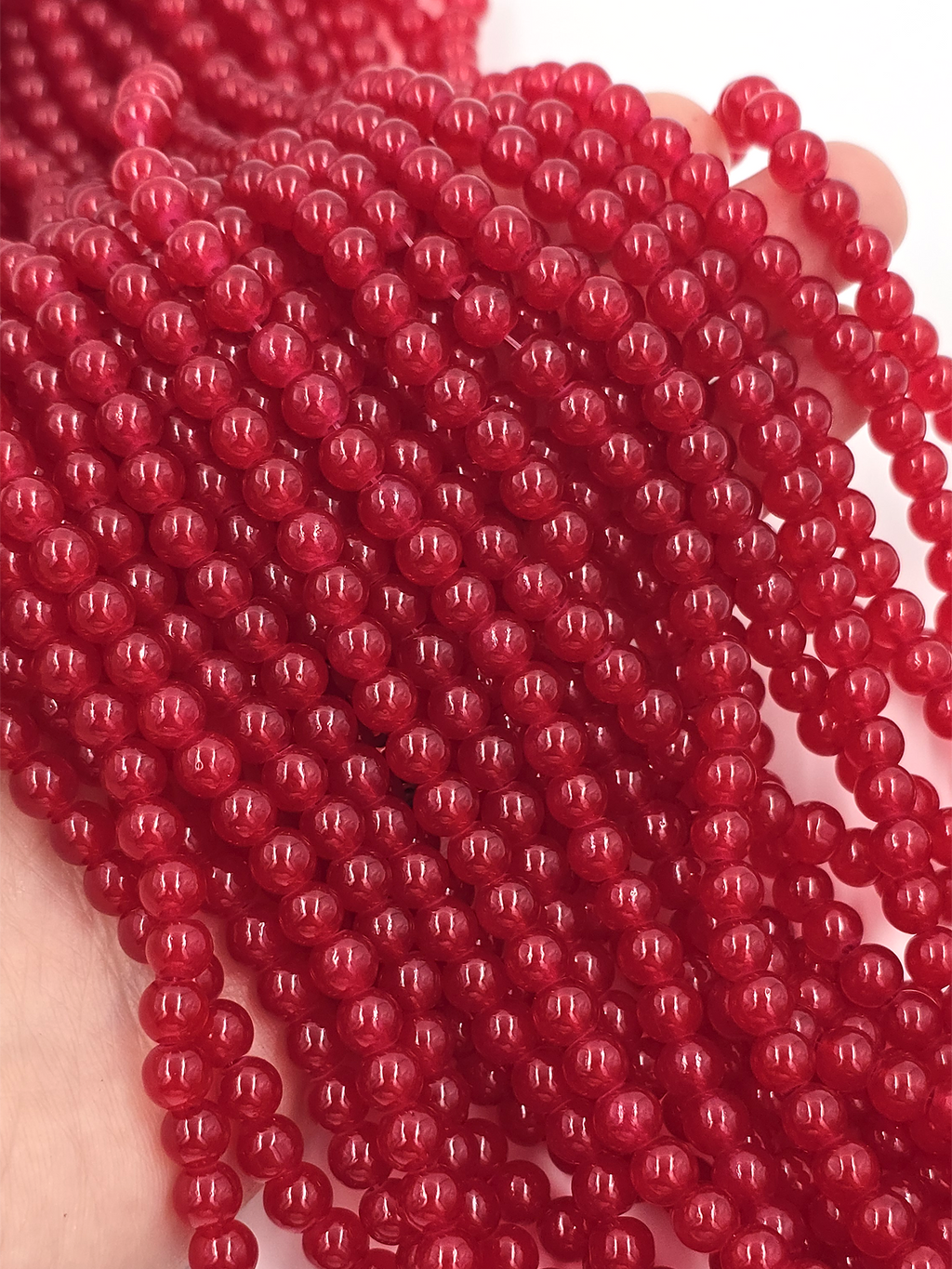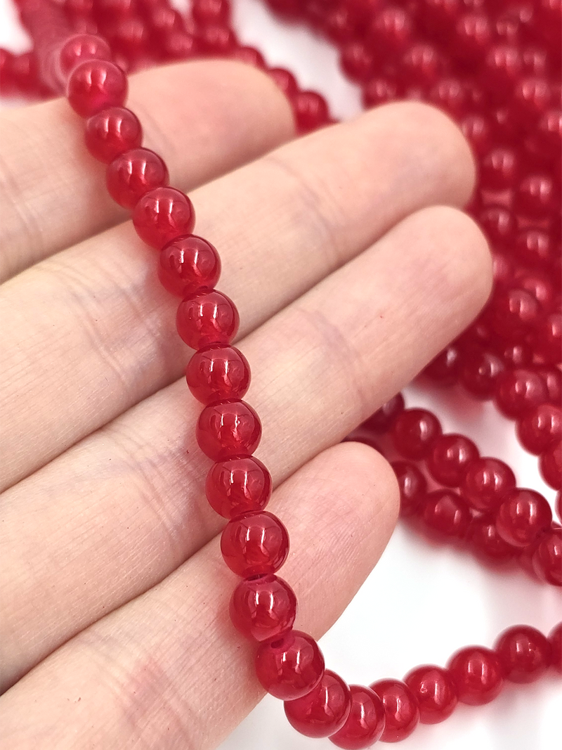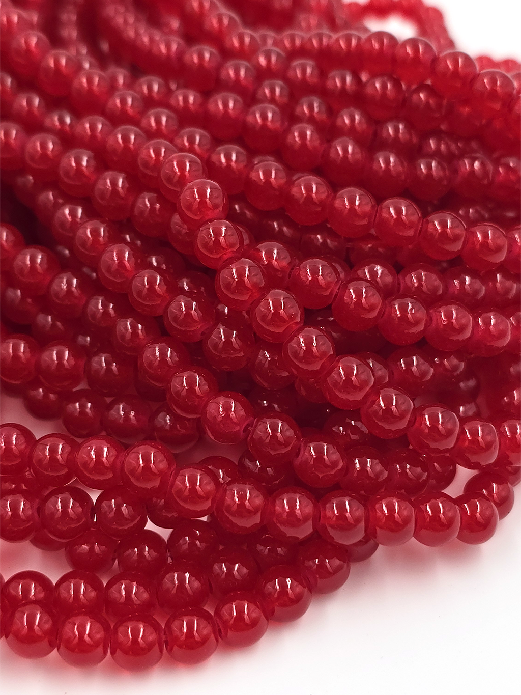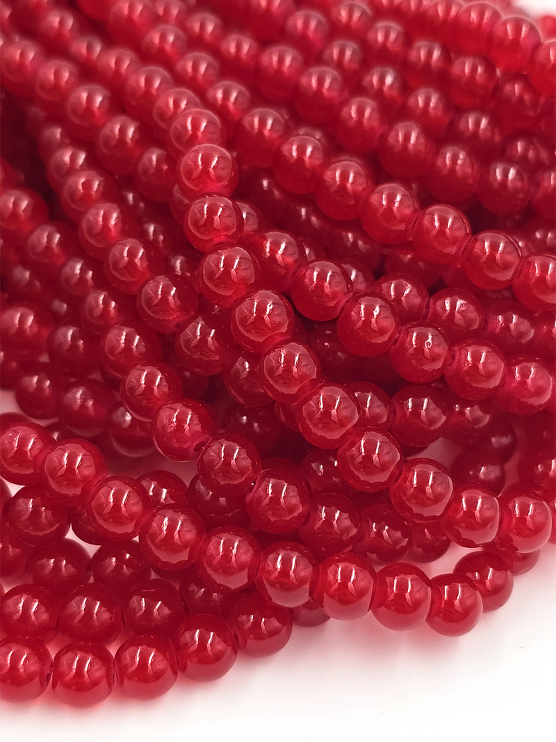 1 strand x Crimson Red Jade Imitation Round Glass Beads, 6.5mm