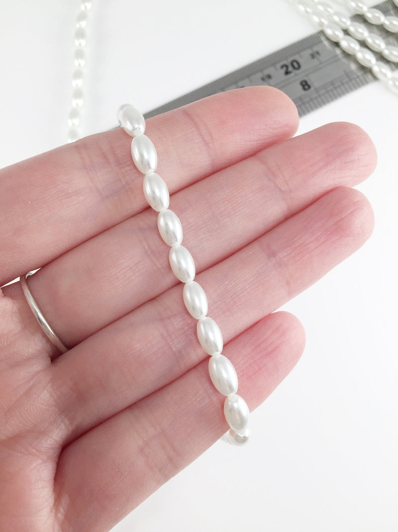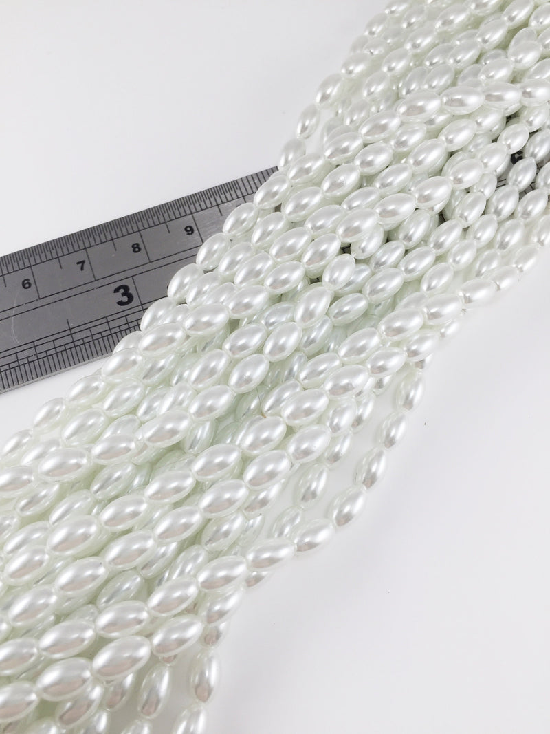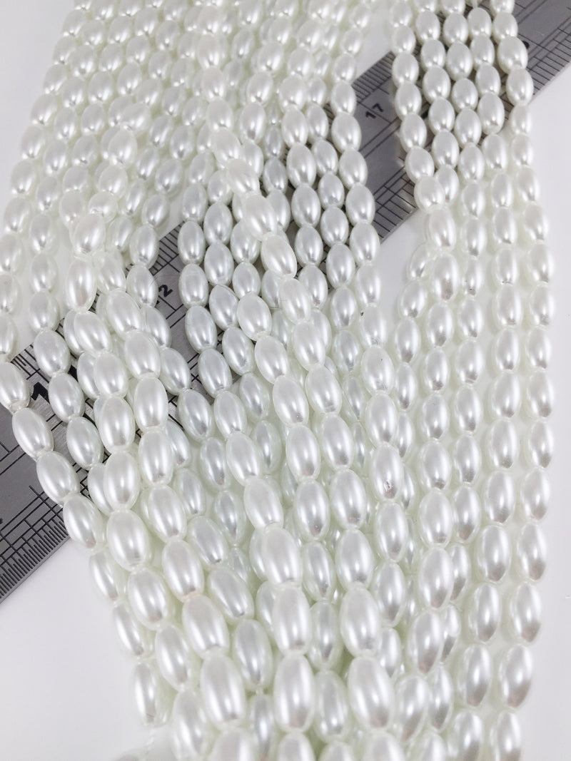 1 strand x Classic Pure White Rice Pearl Beads, 7x4mm (1884)