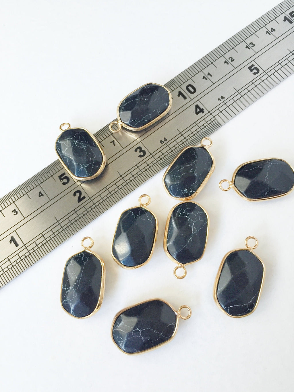 ✨ Faceted hexagon gemstone pendant with gold tone loop, imitation of black turquoise