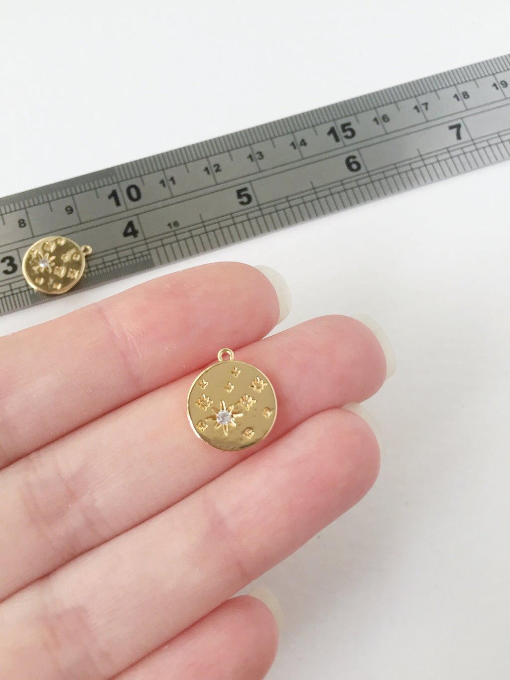 1 x 18K Gold Plated Coin Shaped Star Pendant with Cubic Zirconia, 13x11mm (0122)