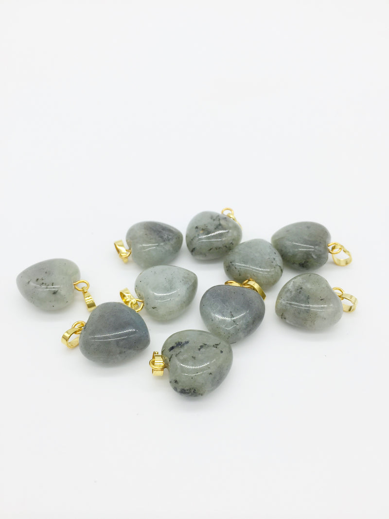 1 x Puffy Heart Labradorite Pendant with Gold Plated Loop and Bail, 19x15mm (0195)