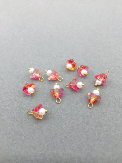 ✨ Trumpet flower shaped charms with faux pearl centre and gold tone brass loops