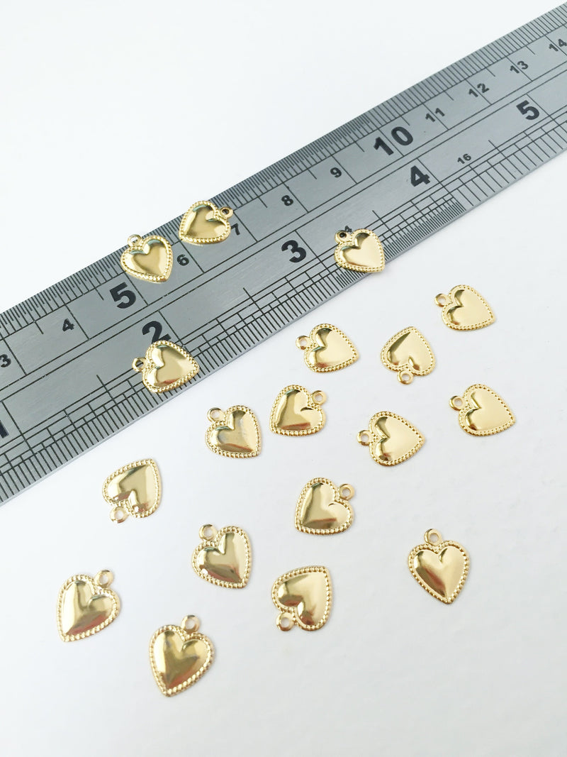10 x Tiny Gold Plated Stainless Steel Heart Charms, 10x8mm (0016)