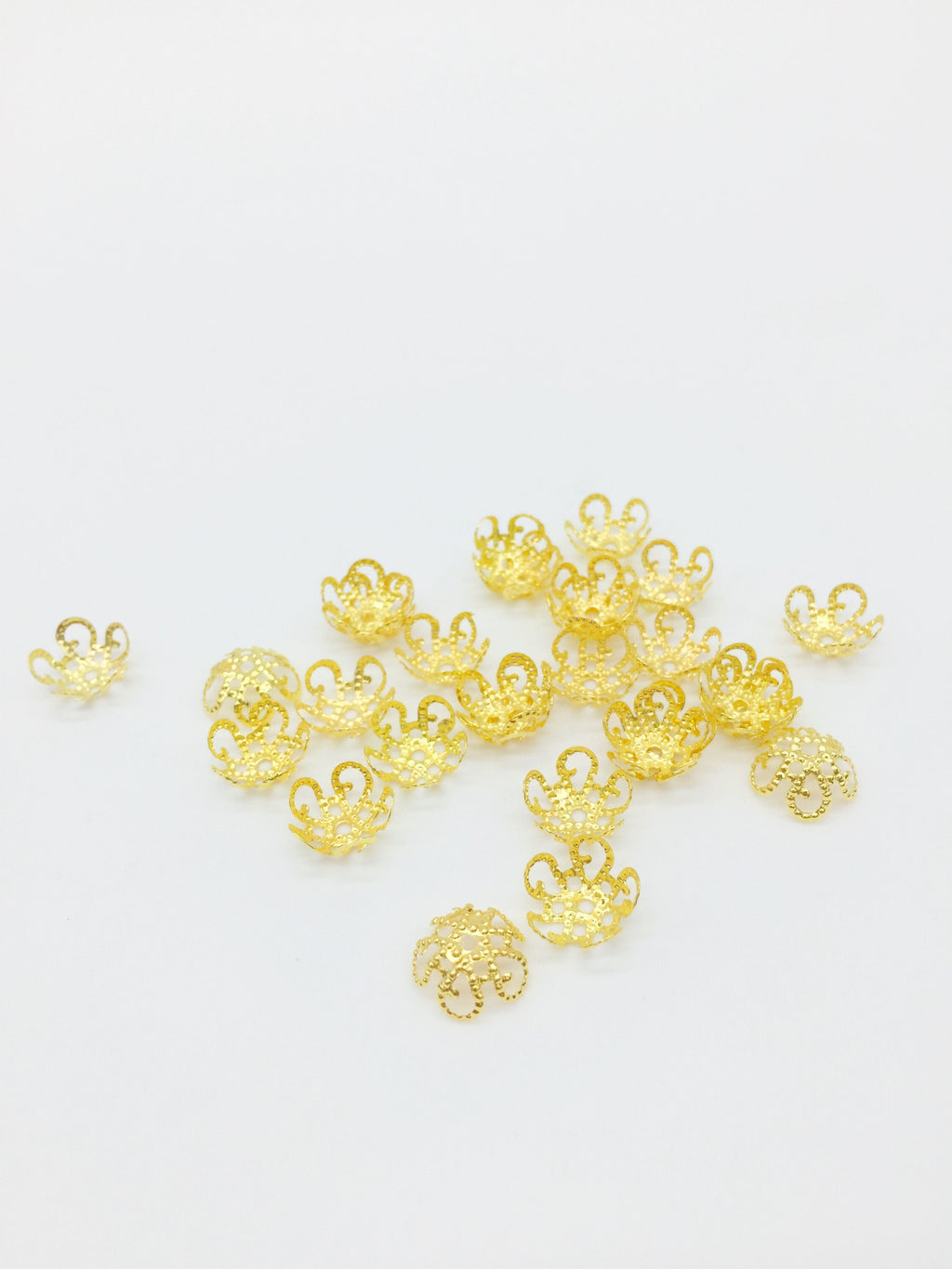 100 x Gold Filigree Tiny Flower Bead Caps, 10mm (3234)