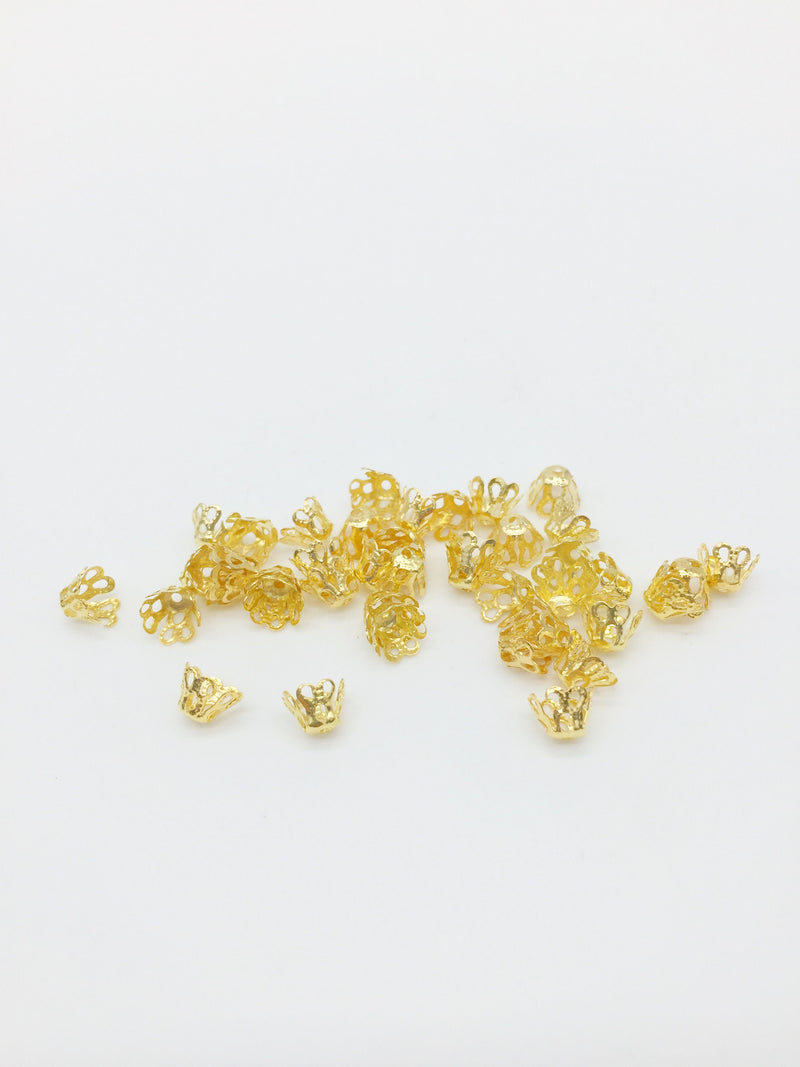 100 x Gold Plated Filigree Flower Bead Caps, 6mm (3235)