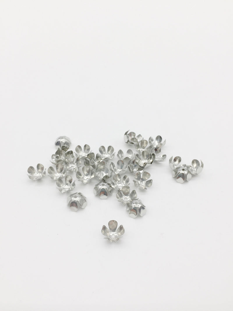 100 x Tiny Silver Flower Bead Caps, 7.5x5mm Flower Bead Caps (3261)