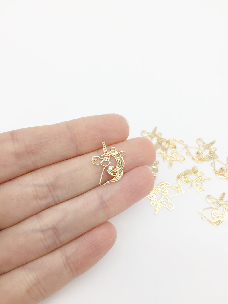 ✨ Gold plated unicorn filigree links, very thin and light yet sturdy