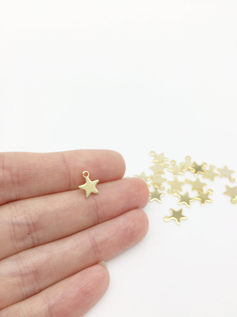 16 x Gold Plated Stainless Steel Star Pendants, 9.5x8mm (3288)