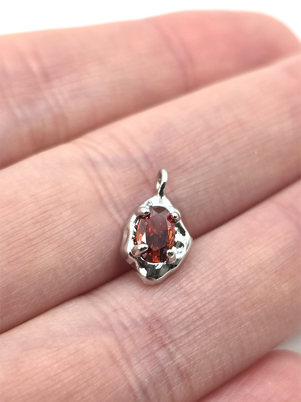 ✨Organic shaped amber cubic zirconia charms, rhodium plated brass.