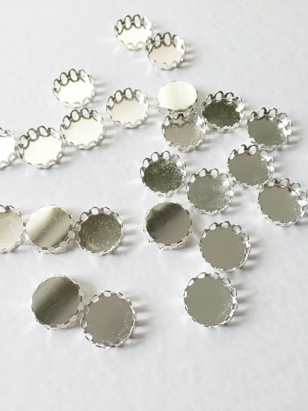 10 x 10mm Silver Plated Lace Edge Round Cabochon Settings, 10mm (0617)